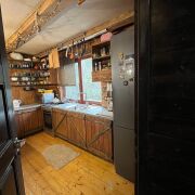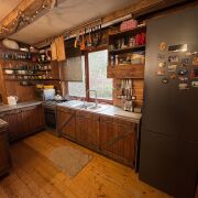 Кухня оборудована встроенной мебелью из натурального дерева и оснащена полным комплектом бытовой и сервисной техники