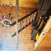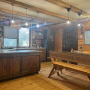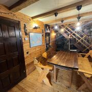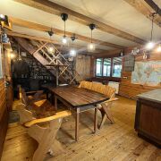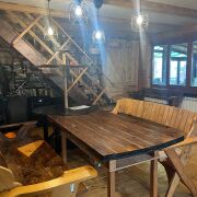 Мебель сделана специально для этого дома, в основном, из натурального дерева.