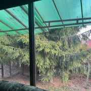Двор благоустроен,  зона барбекю, детский домик и песочница. Теплица из поликарбоната. Закрытый вольер для собак.