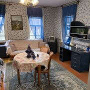 Дом в хорошем жилом состоянии, бревенчатый. Отопление печное, в кухне есть русская печь. Водопровод центральный. Окна, выходящие на улицу, остеклены стеклопакетами.