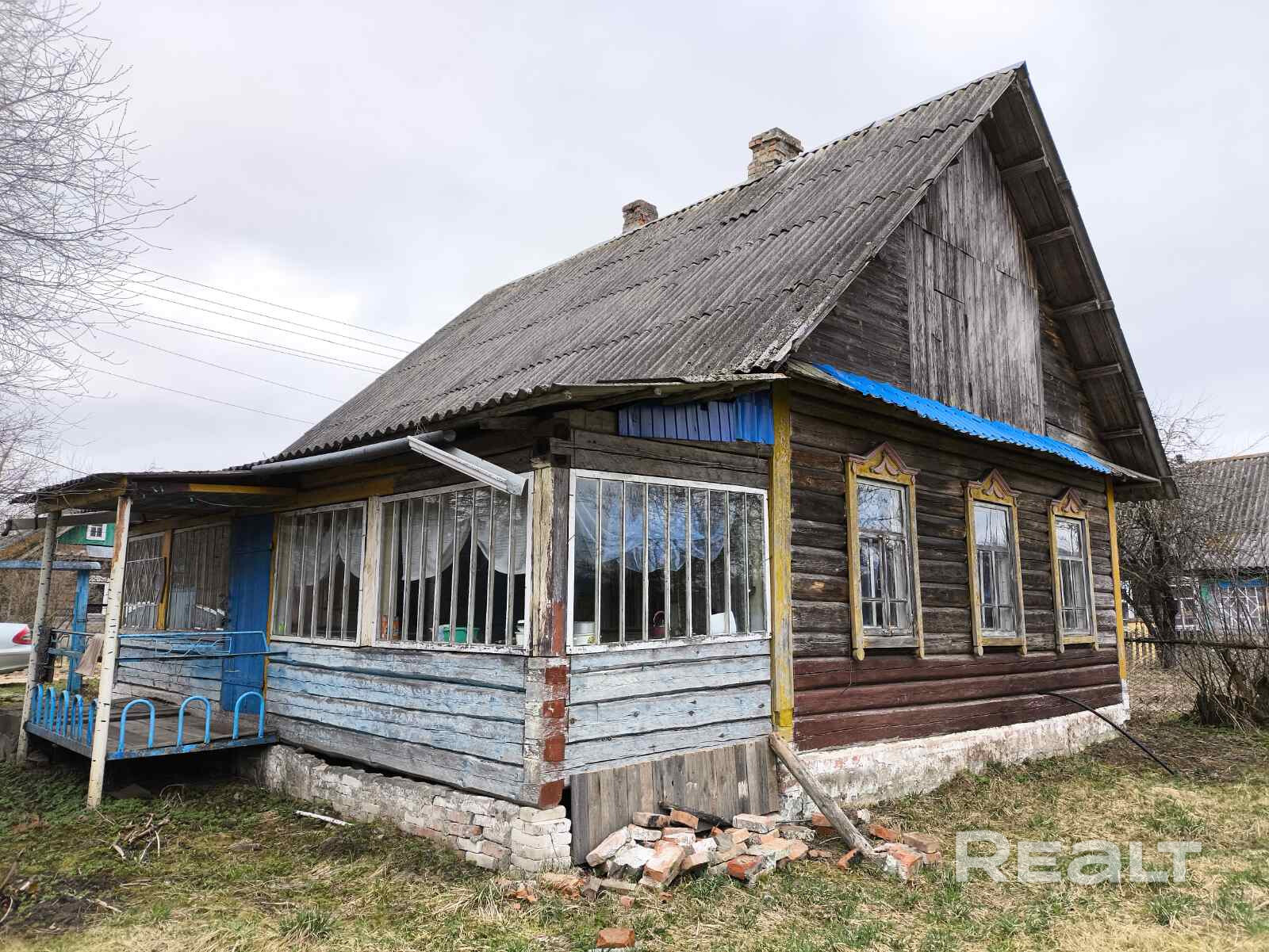 Дом в хорошем жилом состоянии, бревенчатый. Отопление печное, в кухне есть русская печь. Водопровод центральный. Окна, выходящие на улицу, остеклены стеклопакетами. На участке 15,43 сотки расположены баня (бревно), летняя кухня, 2 сарая, плодоносящий сад. Участок правильной формы. Рядом ягодно-грибной лес. В 800-х метрах протекает река Березина с оборудованным пляжем. В деревне есть магазин, приезжает автолавка.
