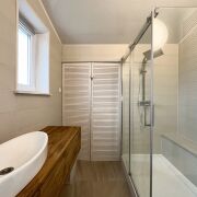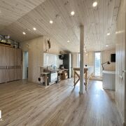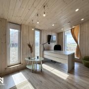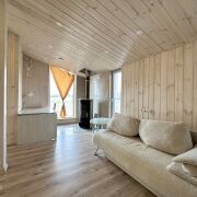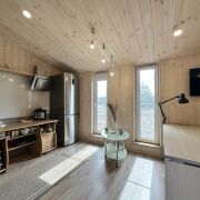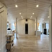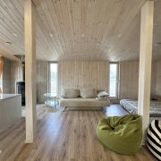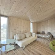 Внутреннее и внешнее пространство защищены качественной вентиляцией, чтобы избежать появления плесени. Благодаря толстому утеплению (200 мм в стенах, 300 мм в полу и 250 мм в крыше) дом подходит для круглогодичного проживания.