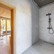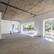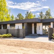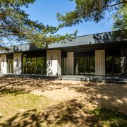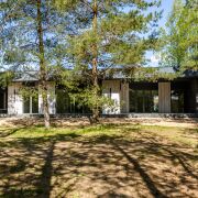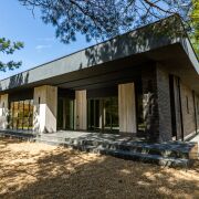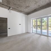 При входе в дом открывается вид на шикарную кухню-гостиную 55 метров. Это пространство вмещает в себя кухню с островом и обеденной зоной и большую гостиную. В совокупности с панорамными окнами до пола пространство за окном соединяется воедино с соснами за окном и наполняется воздухом и светом. А крытая терраса позволяет отдыхать и принимать гостей в любую пору года. Также рядом со входом располагается вместительная гардеробная 9 метров, через которую можно зайти в котельную.