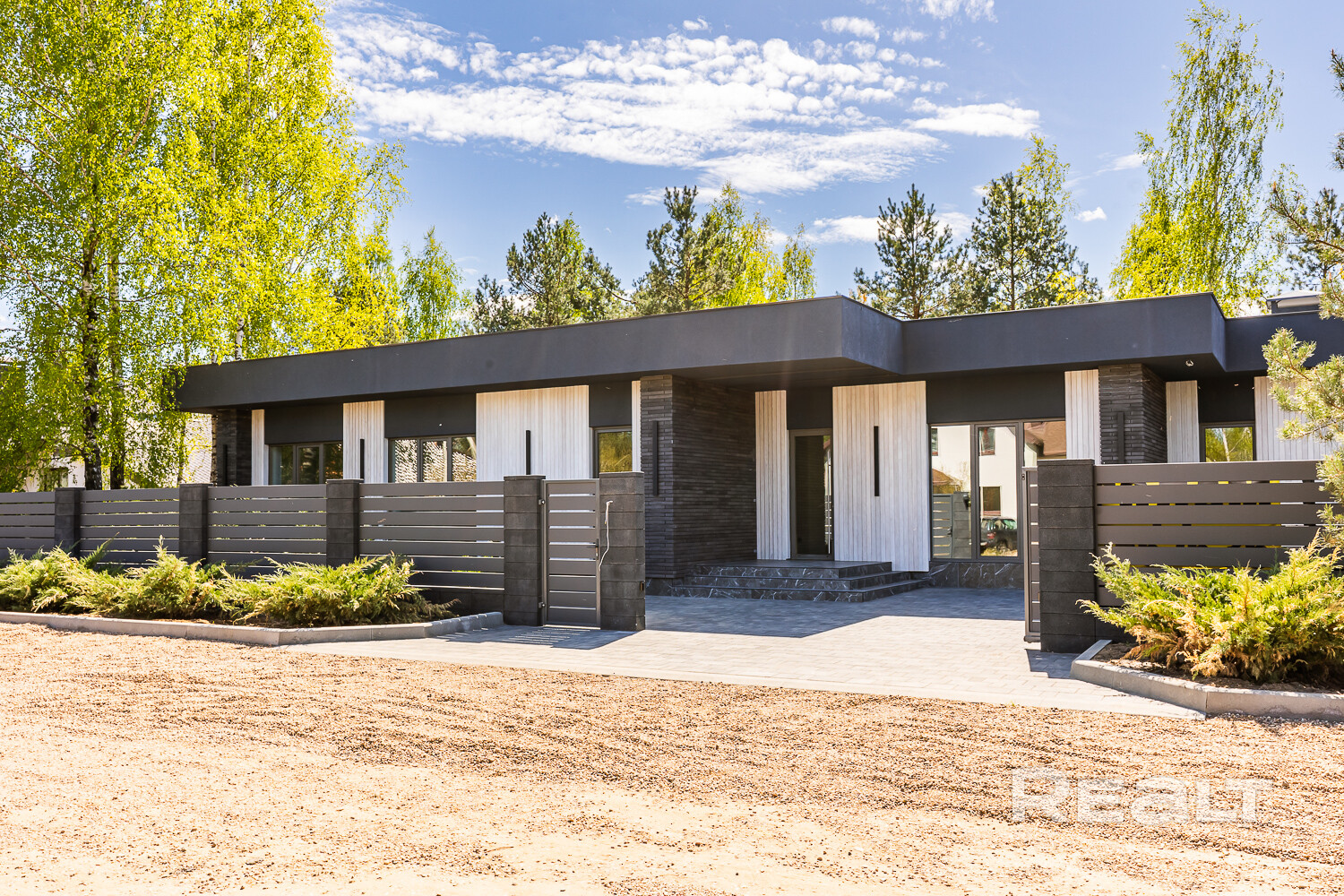 Продаётся стильный, современный одноэтажный дом в жилой коттеджной застройке а.г. Колодищи по ул. Большая Цветочная. В пешей доступности вся основная инфраструктура: школа с бассейном, сад, гипермаркет, остановки общественного транспорта.