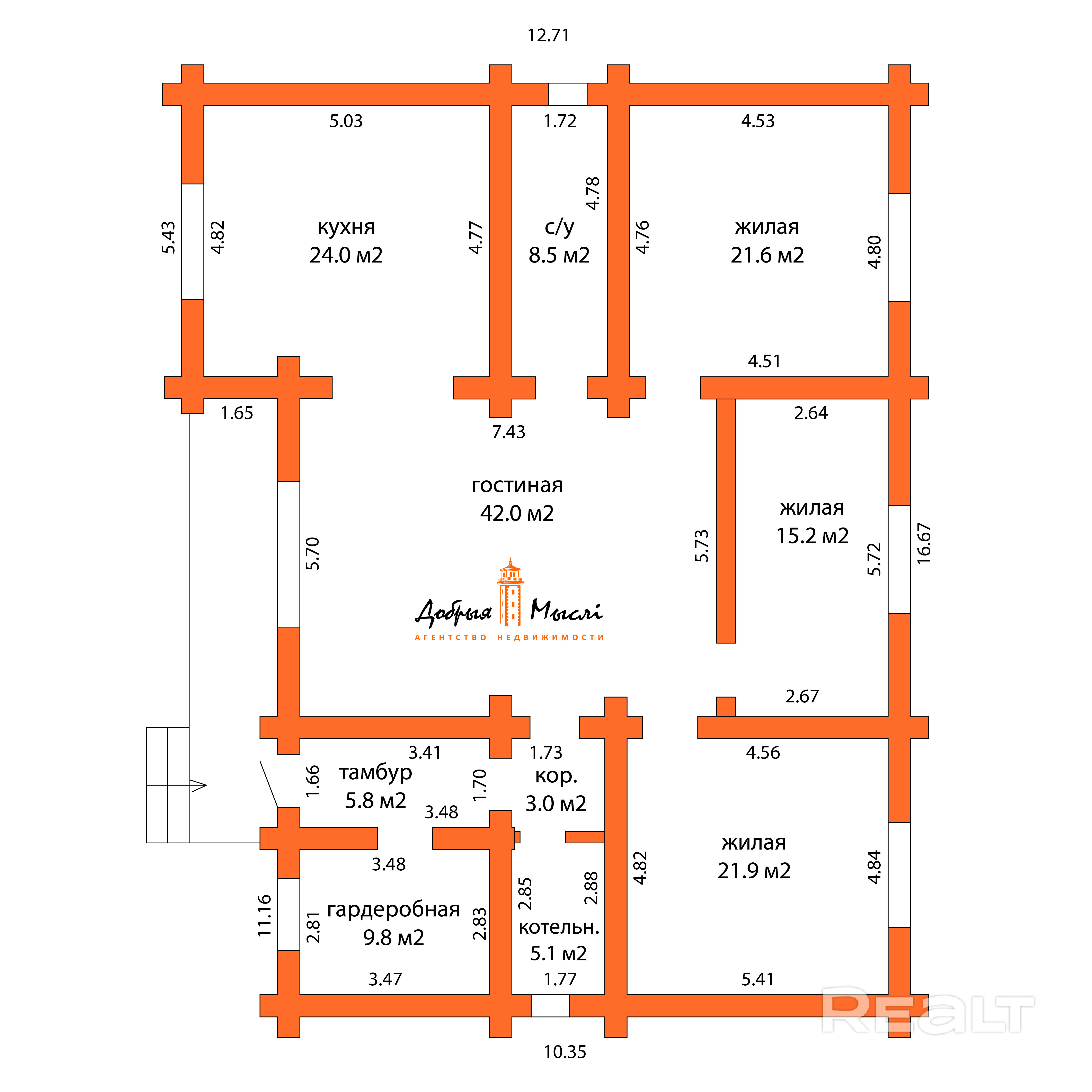 Общая площадь 100.7 кв.м., по СНБ 156.9 кв.м., жилая 68.5 кв.м., кухня 24 кв.м. В доме 3 спальни, гостиная 42 кв.м., гардеробная комната площадью 9.8 кв.м. На участке также расположен гостевой полноценный дом площадью 80 кв.м. в два этажа, с оборудованной кухней, сауной.