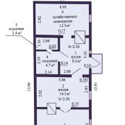 - Общая площадь дома составляет 63,9 м2, жилая - 34 м2, кухня- 9,3 м2.
