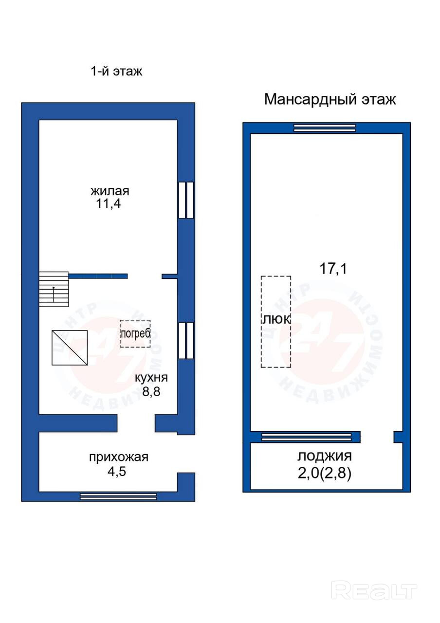Второй этаж утеплен 17,1 кв. м с выходом на балкон