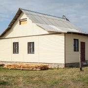 -Построен из блока, утеплён и обшит сайдингом — современный внешний вид и хорошая теплоизоляция.