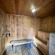 уровневый гараж с комнатой отдыха, гостевой 2-уровневый дом, сарай, дровник, русская баня, теплица, ворота и гараж с заездом для авто. Остается кухня, вытяжка, плита, остальная мебель по договоренности. Возле дома продуктовый магазин и остановка, школа, сад, поликлиника, рядом красивейшее место для прогулок возле леса и реки.