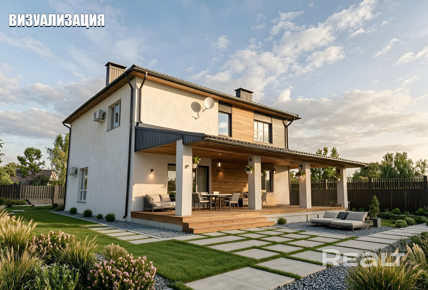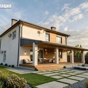 Строительство из качественных материалов: стены из силикатного блока (400 мм), ЖБ-перекрытия, утеплённый фасад с декоративной штукатуркой.