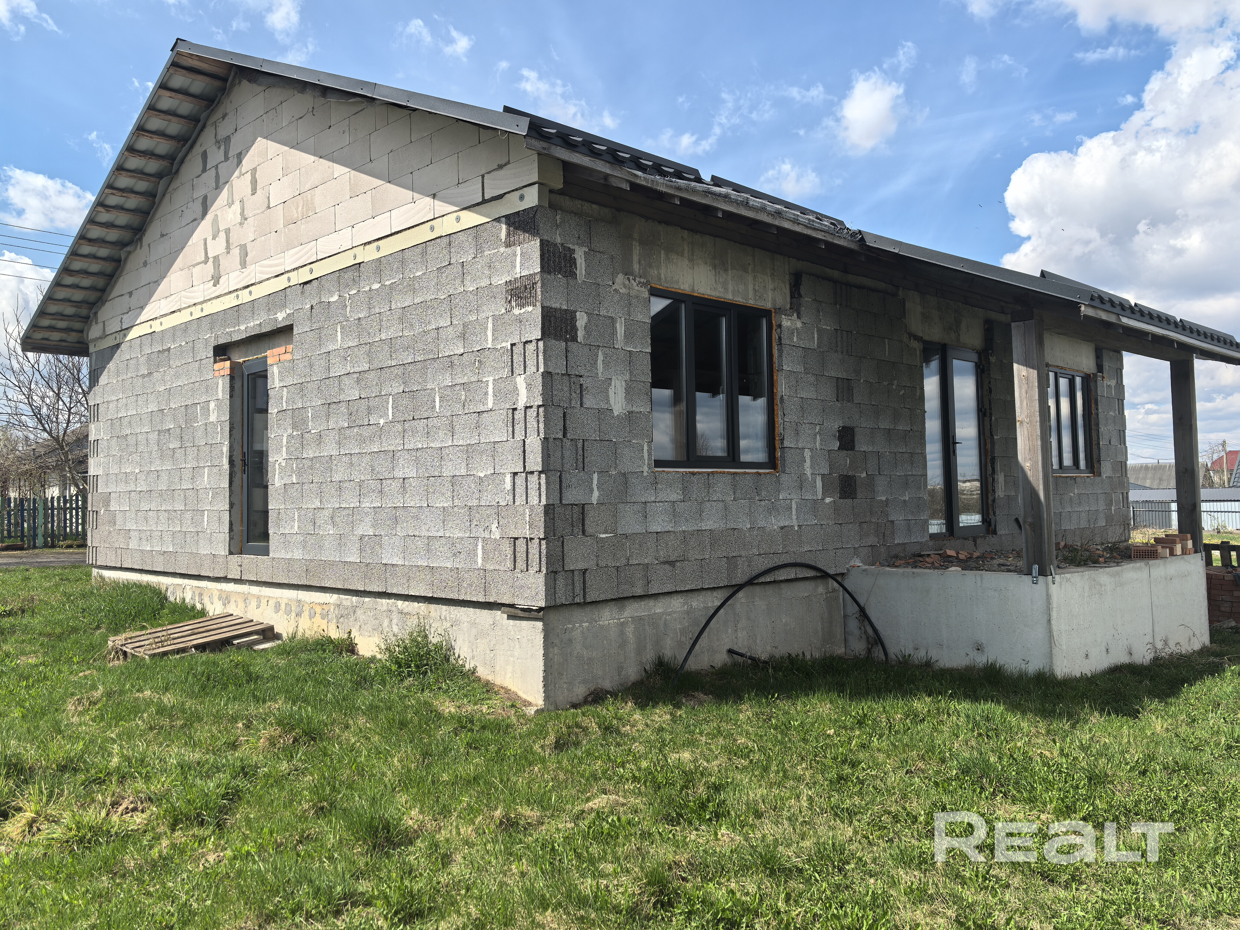 Продается коттедж в 22 км от Минска в д. Залесье, Дзержинского района. Общая площадь 98, одноэтажный, 4 комнаты, керамзитобетон, металлочерепица, стеклопакеты ПВХ, полы - стяжка чёрновая, рядом центральный водопровод , газ рядом, есть электричество , выводы канализации. Площадь участка 14,7 сот. Автобусное сообщение. 53 тыс. $, торг.