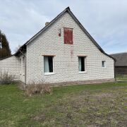 -Одноэтажный деревянный дом, обложенный кирпичом.