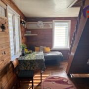 - Внутренняя отделка из натуральной вагонки создаёт неповторимый уют, наполняя дом ароматом дерева и природной теплотой. Деревянные полы добавляют комфорта, а пластиковые окна обеспечивают современное утепление.