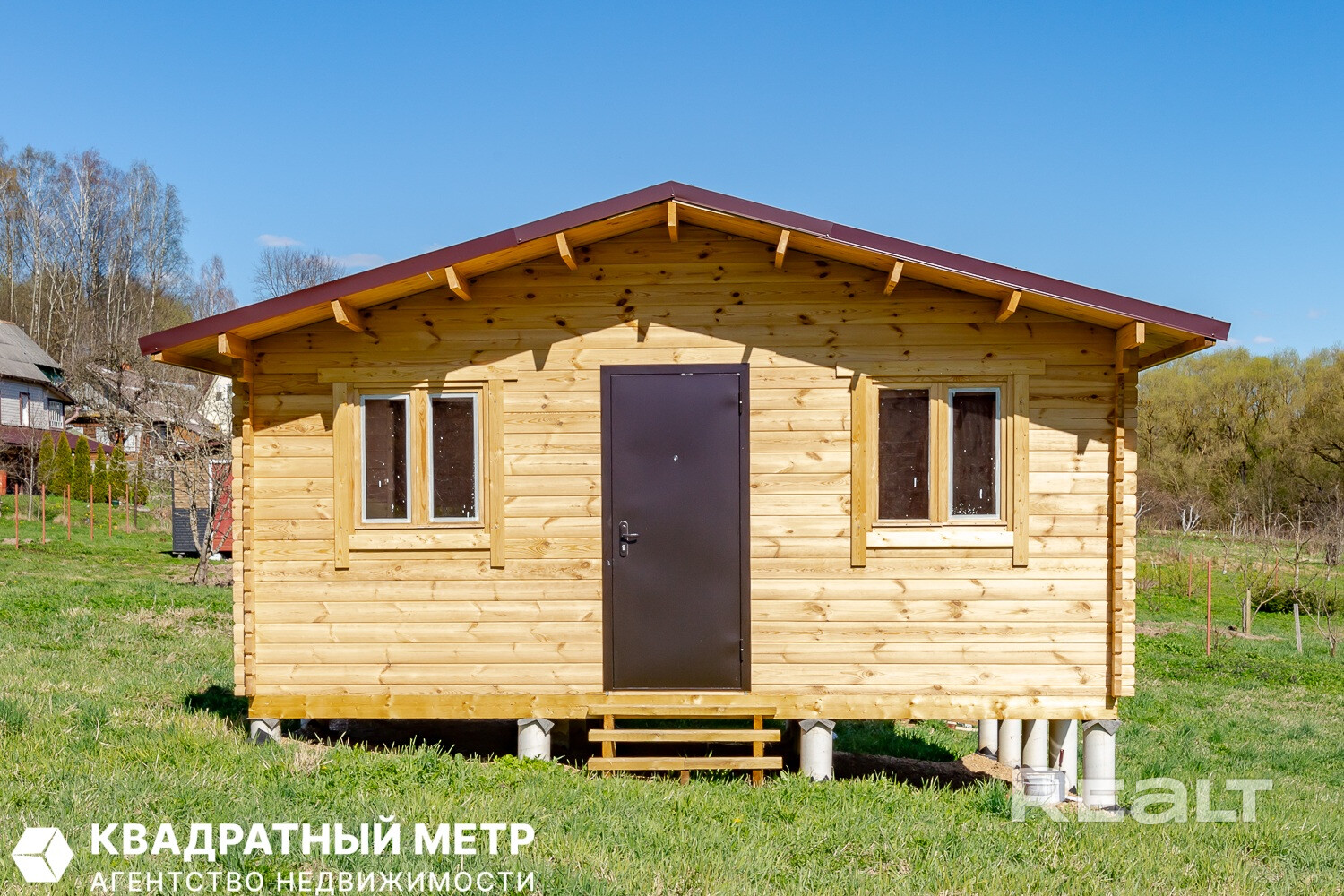 Дом новый из дерева, на бетонных сваях в 1 уровень. Незавершенное законсервированное капитальное строение. Готовность 50%.