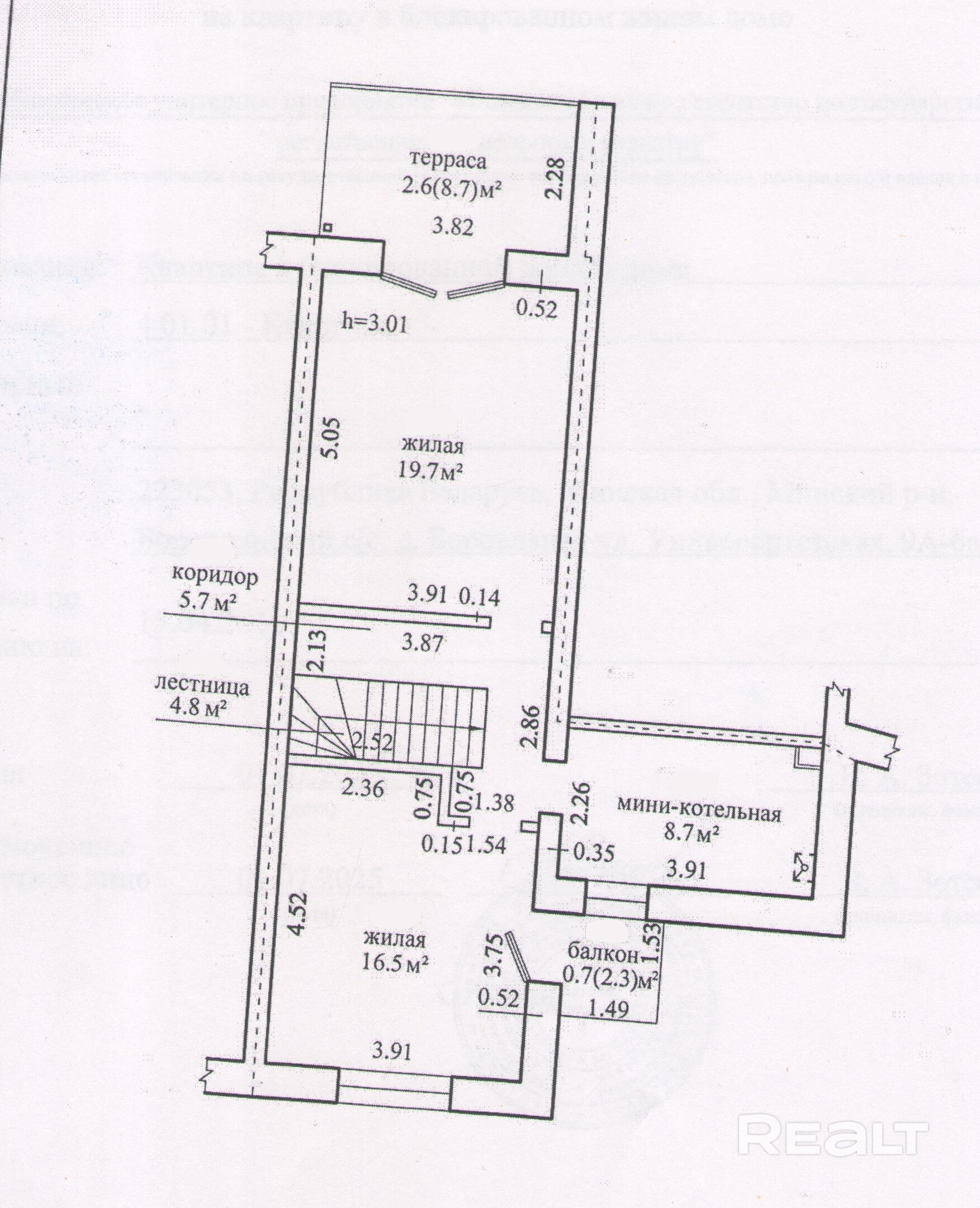 Танхаус (3-комнатная квартира, в два уровня): 81,5 м.2