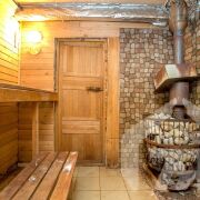 - На участке есть отличная баня с полноценной парилкой с деревянными полками и каменкой, где можно испытать настоящий жар и целебный пар, а также есть комната отдыха для релаксации и общения с гостями. Баня на берегу реки становится местом оздоровления, духовного очищения и семейных традиций. После парилки можно окунуться в прохладные воды Западной Березины, закаляя организм и получая незабываемые ощущения.