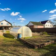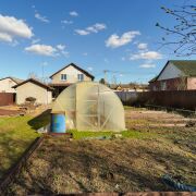 Участок: 9.1 соток в частной собственности. На территории: фундамент под баню, теплица, гараж с ямой.