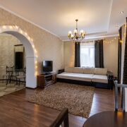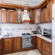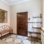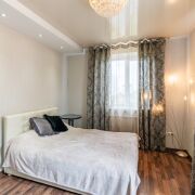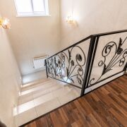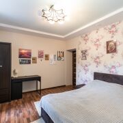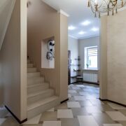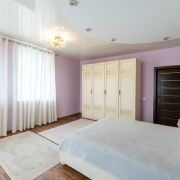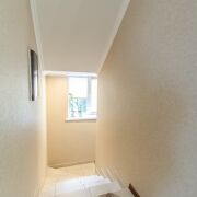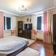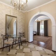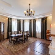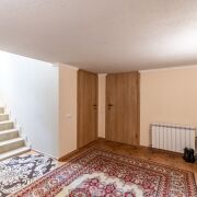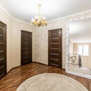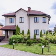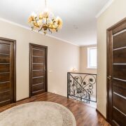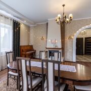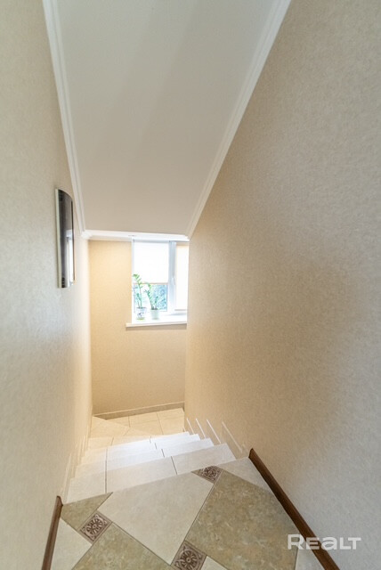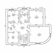 Первый этаж состоит из кухни-столовой, просторной гостиной с камином и выходом на террасу, второй этаж – 4 жилых комнаты и санузел. В доме предусмотрен цокольный этаж с санузлом, кладовой и 2-мя комнатами.
