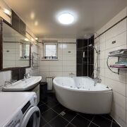 Общая площадь 181 кв.м,. В доме 2 жилые комнаты, большая кухня-гостиная с красивой террасой. Так же имеется второй мансардный этаж. На участке рабочая ,оборудованная баня с комнатой отдыха и вторым этажом с полноценным спальным местом .