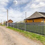 До самого дома ведет дорога из асфальтной крошки. На территории оборудована парковка на 2 машины (также укреплена асфальтной крошкой). Участок огорожен забором по периметру, установлены автоматические откатные ворота, калитка.
