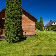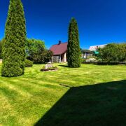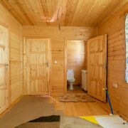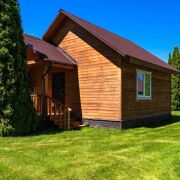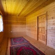 Этот дом — это уютное шале, где пахнет лесом и теплом. Лакированный деревянный пол, большие окна ПВХ — здесь хочется пить чай и смотреть на звезды через окна.