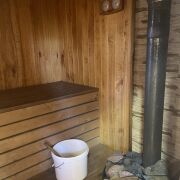 На территории участка расположена баня с парилкой. В помещении бани есть дополнительная просторная комната для отдыха. Водоем для ловли рыбы.