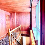 Внутри дома мансардная часть отделана деревом, на первом этаже стены оштукатурены, покрашены и оклеяны обоями, что создаёт уютную и тёплую атмосферу. По всему дому установлены стеклопакеты, входная дверь металлическая, межкомнатные двери - деревянные и МДФ.