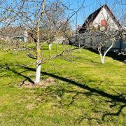 Участок ровный, расположен посередине улицы, заезд на участок с двух сторон (установлены откатные ворота), огорожен металлопрофилем. Участок облагорожен, имеется сад из плодоносящих деревьев.