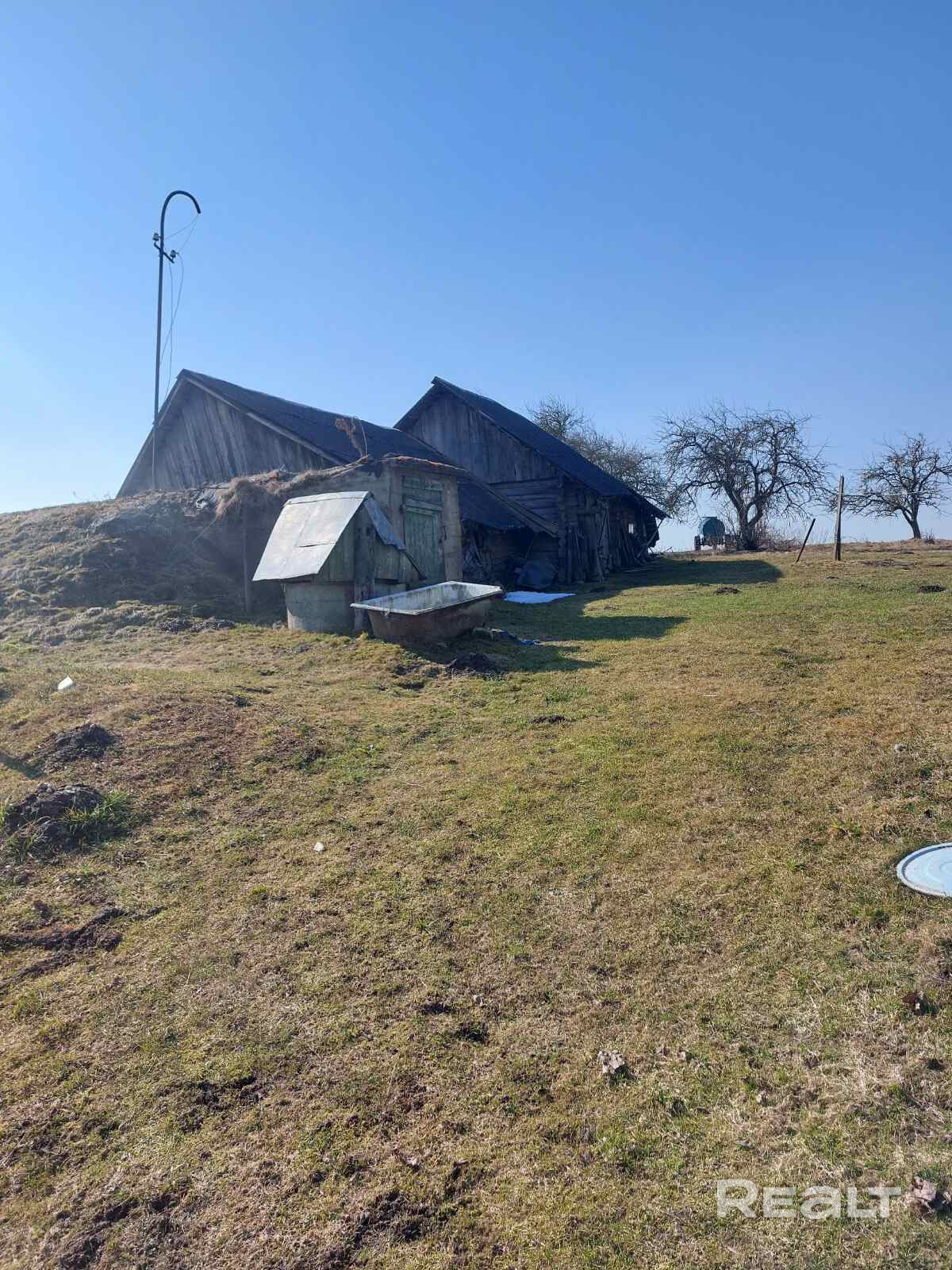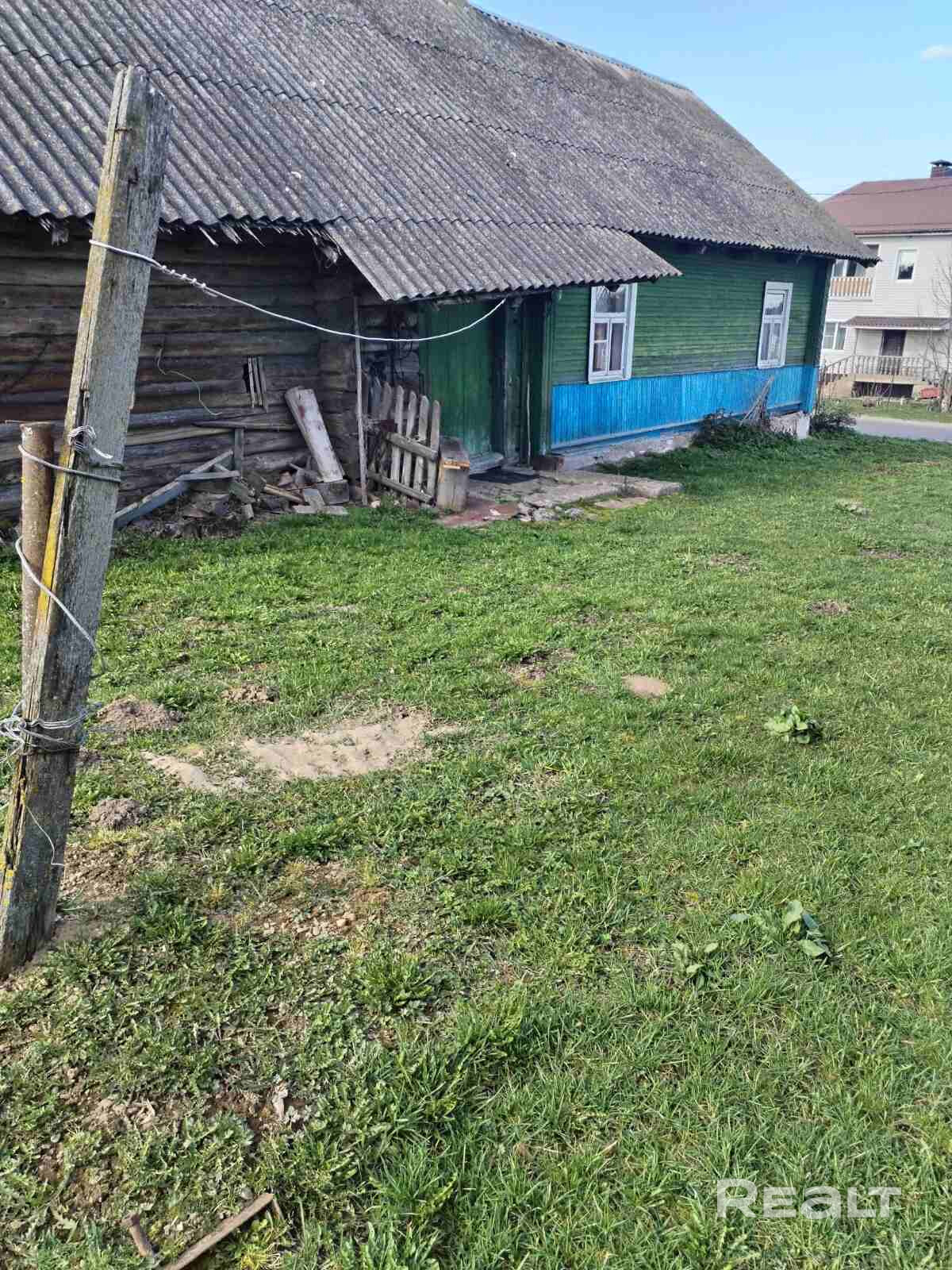 Деревянный,сельский дом.Отопление-печное, вода-колодец, газ-балон (возможна врезка, магистраль рядом). туалет -на улице.Участок-24 сотки,есть погреб, сарай, сад.В деревне-магазин,почта,клуб,школа.Автолавка-два раза в неделю.Остановка не далеко(автобус три раза в день от метро Каменная горка).Торг.Подробности по тел. +375 44 582-14-02..