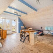 -Новый трехуровневый (с мансардой) бревенчатый дом 2019 года постройки. Общая площадь  по СНБ 214,8 м2, жилая - 158,6 м2, кухня - 13,4 м2.