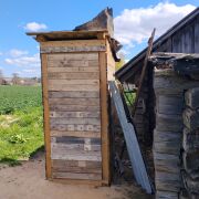 ровный , росчищеный участок, новый туалет имеется каркас для душа на территории находится большой сарай и бетонный погреб в доме имеется печь и групка в исправном состоянии(надо штукатурить) установлены стеклопакеты возможен обмен с доплатой и без , на дом в бобруйском направлении, или же в любом другом но не более 50 км от Минска