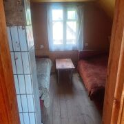 Дача изготовлена из бруса. На первом этаже 2 помещения (прихожая и просторный зал с печкой) На втором этаже расоложены так же 2 помещения.