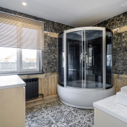 Из жилой зоны, на террасу, вынесена современная топочная, оборудованная твёрдотопливным котлом, бойлером косвенного нагрева на 140л. и гидроаккумулятор на 750л.