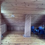 Дом: двухэтажный дом из бруса. Отделка фасада сайдинг. На первом этаже кухня, современная душевая кабина, бойлер, комната отдыха и БАНЯ. Вода сезонная. На втором этаже большая мансардная комната с удобным диваном. Дом грамотно продуман, баня расположена на первом этаже и когда топится баня прогревается весь дом. Это очень энергоэффективно, удобно и практично.