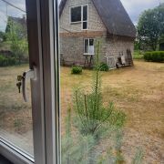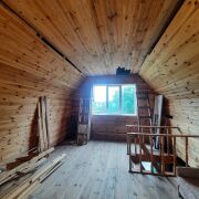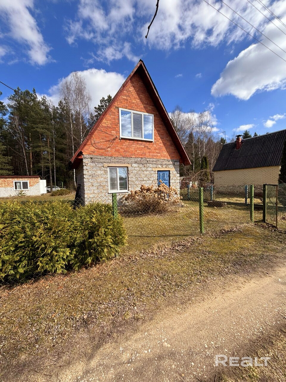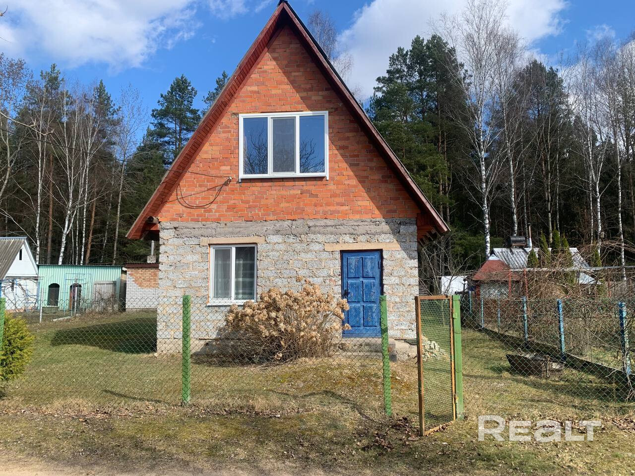 Уютный дачный 2-этажный домик с внутренней деревянной отделкой. Участок примыкает к лесу, всего в 0,7 км от чистейшей реки Нарочанка. Площадь первого этажа - 33 м.кв., второго - 23 м.кв. На первом этаже 4 окна, на втором одно большое окно и балконная группа с видом на лес. Есть возможность достроить балкон. На втором этаже высокий потолок (3 м). В доме и бане новые стеклопакеты. Есть постройка 25 м.кв., в которой оборудована баня, предбанник, летняя кухня, кладовка. На участке скважина 12 м.