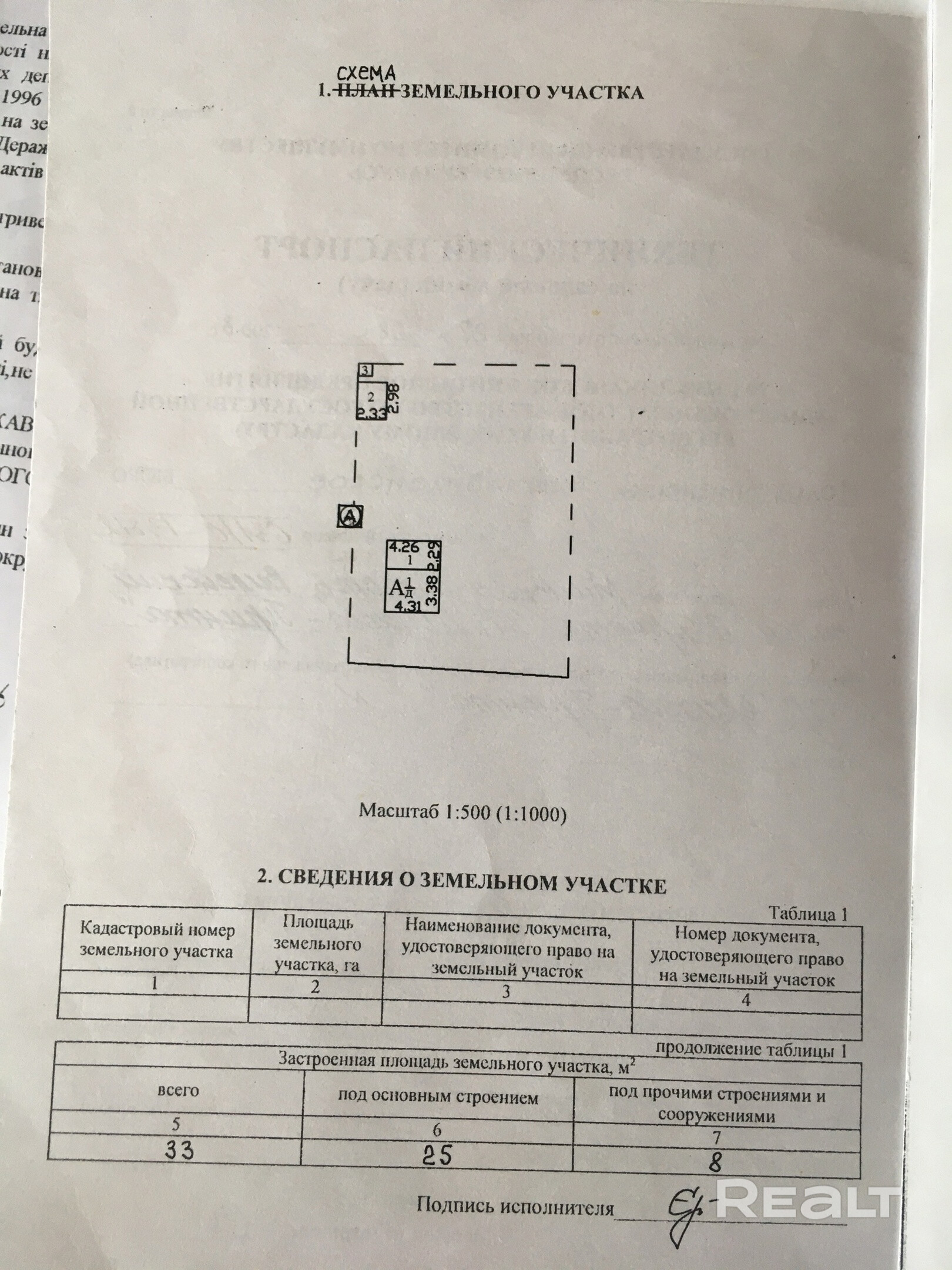 - Площадь участка