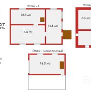 Имеется цокольный этаж, размеры цокольного этажа 6,40м*6,39м, мансардного этажа 2,99м*5,72м, первого этажа 6,09м*6,14м. Внутри дома отделка стен выполнена вагонкой.