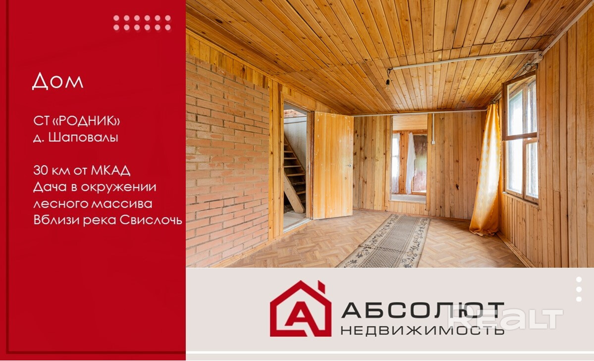 «РОДНИК» №249 деревня Шаповалы» 30 км от МКАД (Молодеченское направление, Воложинский район). Участок находится в частной собственности. На участке стоит добротный деревянный сруб 6,09м*6,14м на высоком фундаменте 2010 года постройки. Два уровня и гараж. Окна в доме деревянные. Имеется новая печь в доме. Фундамент -блоки ФБС, бетон. Перегородки и перекрытия -деревянные. Крыша покрыта шифером. Полы деревянные.