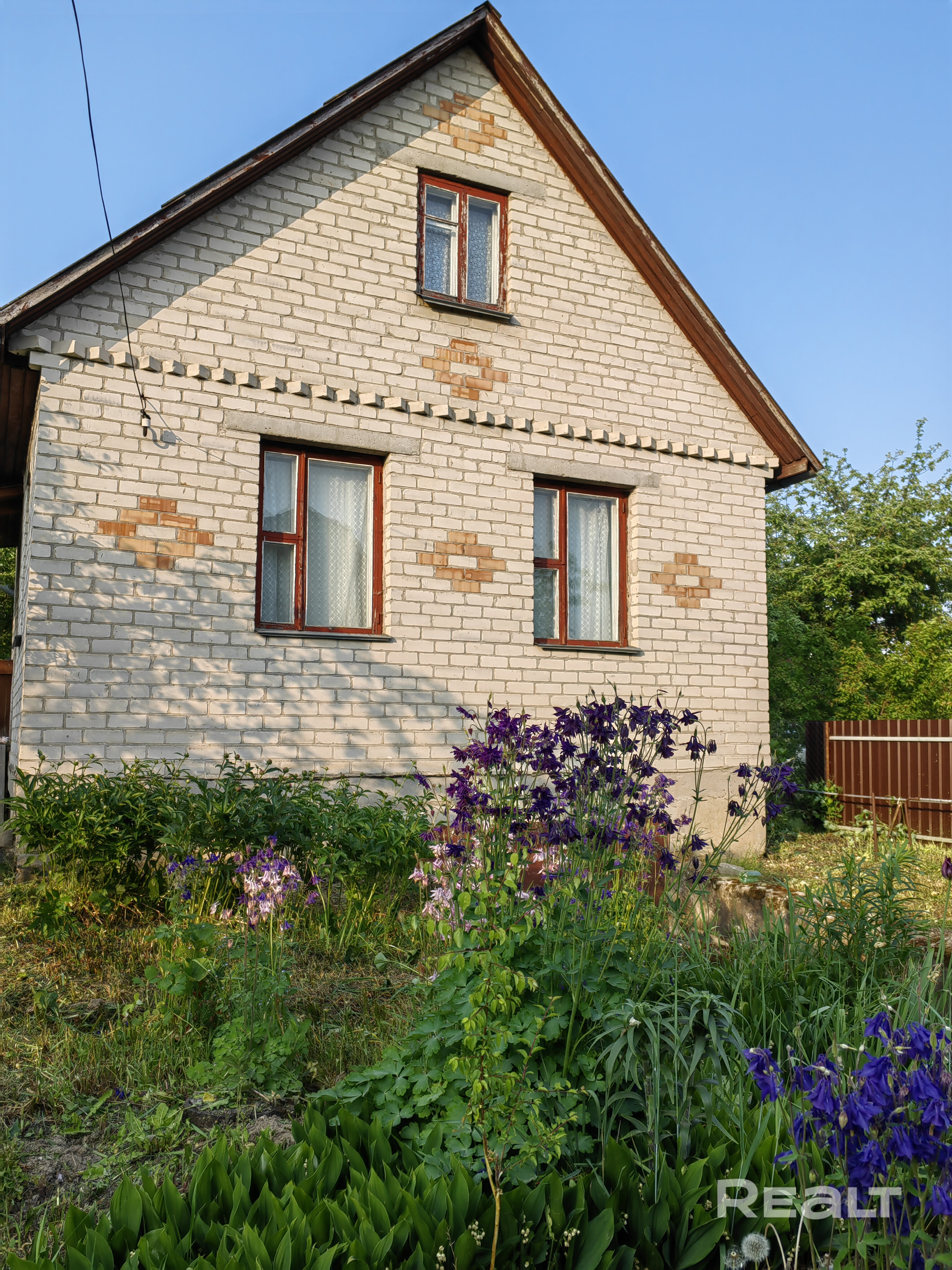 Продается двухэтажный, каркасно-щитовой дом обложенный кирпичом с территорией 6 соток, находящийся в составе садового товарищества "Вясёлка 1990", в 25 километрах от Минской кольцевой дороги. Дом имеет две жилые комнаты на первом этаже и одну комнату на втором. Каждая комната и кухня имеет по два оконных блока, что делает помещения очень светлыми, также дом оборудован печным отоплением, газовой плитой запитанной от газового балона. Участок ровный, огороженный забором с трех сторон.