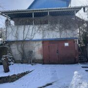 Дачный домик построен из керамзитобетонных панелей, обшитых сайдингом (цокольный и первый этаж), мансардный выполнен из дерева, крыша - шифер. Весь дом утеплен. Общая площадь – 143,9 м2, жидая – 54,9 м2, кухня – 8,8 м2. Год постройки 1995. На первом этаже установлены стеклопакеты. Отопление – печное. Во дворе душ и туалет. Вода сезонная на улице, а также заведена в дом. Электричество 220 Вольт. Цокольный этаж достаточно большой, вмещает в себя гараж с ямой, баню и несколько хозяйственных помещений (для хранения инвентаря и закаток). На участке есть стеклянный парник, плодоносные яблони, крыжовник, шиповник, виноград.