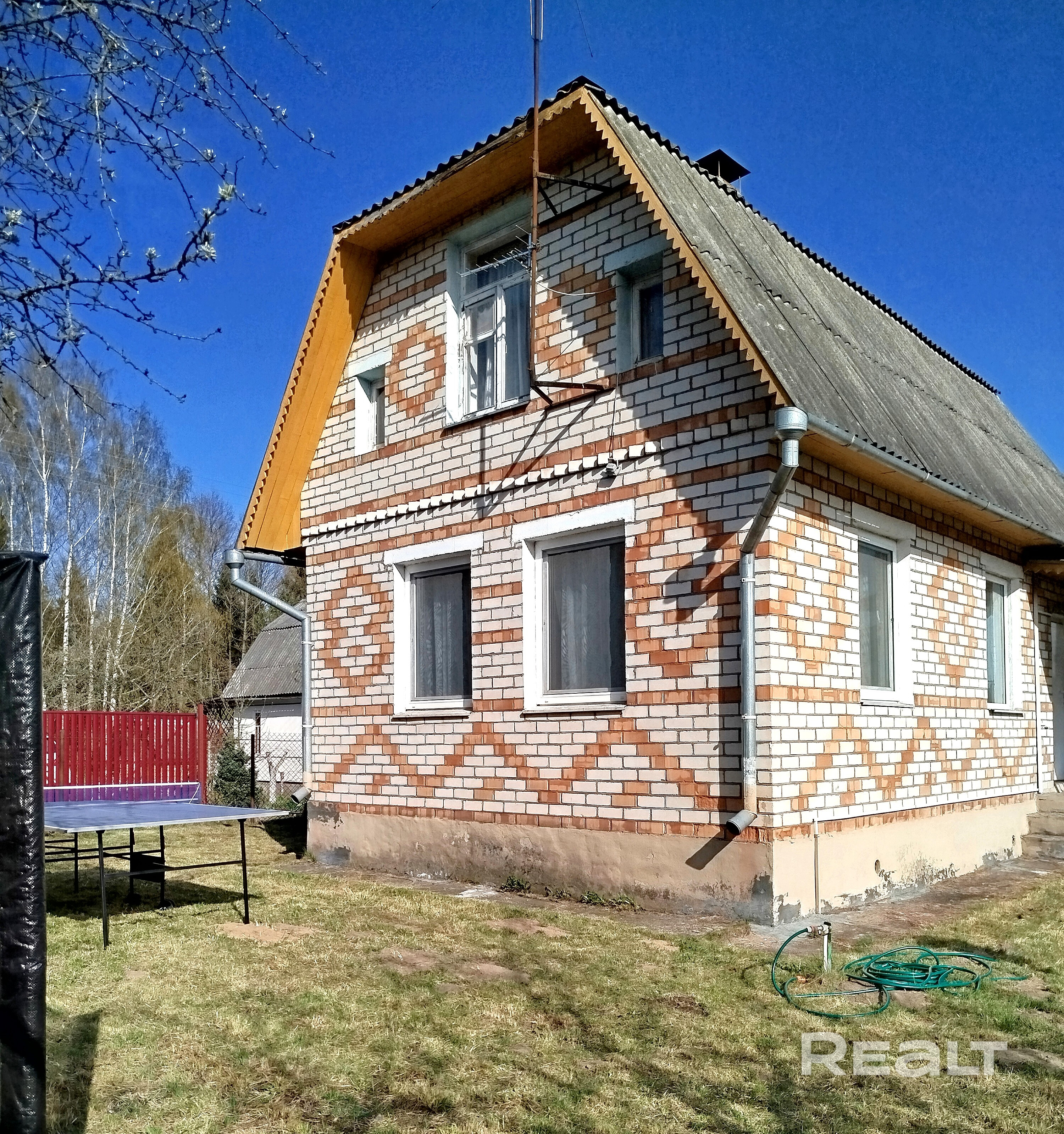 Продам дачу в 45км от Минска. В доме есть биотуалет, холодильник, чайник, бойлер (10л), электроплита, хорошая кирпичная печь, современный электрощиток, телевизор. В дом введена холодная вода. На участке есть парковка на 2 авто, беседка, сарай, летний душ, туалет, кирпичный мангал, качели, стол для настольного тенниса. Для детей имеется батут, бассейн, манеж, отдельный столик. Рядом с дачей есть лес, озеро, продуктовый и строительный магазины, заправка.
