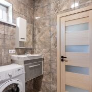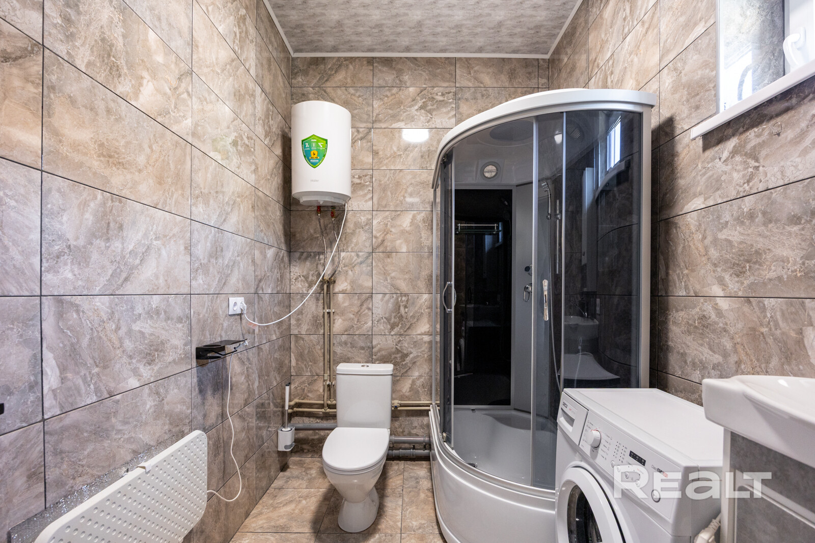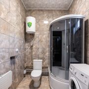 Большой сан узел с новым сантехническим оборудованием. Стиральная машина.