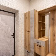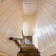 На первом этаже расположена прихожая, сан узел, кухня и гостиная.