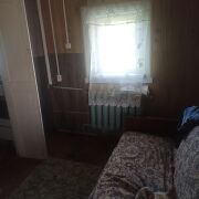 Жилой дом, с гаражом. Остался в наследство от отца. Рядом лес и река с пляжем. Санузел на улице, требует ремонта. Плюс одна большая комната не жила, можно сделать ремонт и сделать дополнительную комнату или две. Торг уместен
