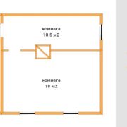 Общая площадь дома составляет 43 м2, жилая 28,5 м2, высота потолков 2,50 м.