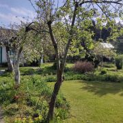 Земельный участок: площадь 4 сотки, ровный ландшафт с плодовыми деревьями, вода на участке сезонная.