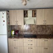 На кухне вместительный холодильник, стеклокерамическая панель, вытяжка. Стены и потолок-обои (Германия).
