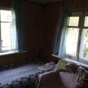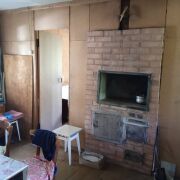 В доме веранда, кухня с печкой и две жилые комнаты. Стены в доме оббиты листовой фанерой и подготовлены под поклейку обоями.