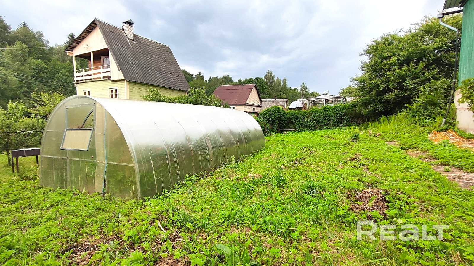 На участке установлен парник. Имеется хозпостройка для хранения дров.