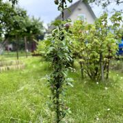 • Засажен декоративными и плодовыми растениями — сад утопает в зелени